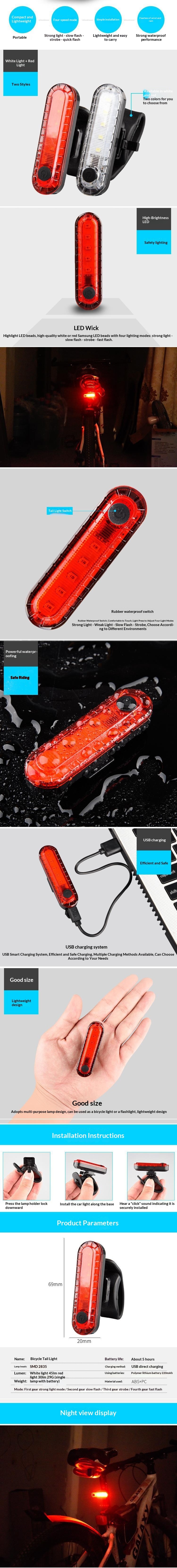 2018 New Bicycle Taillight Outdoor Cycling USB Charging
